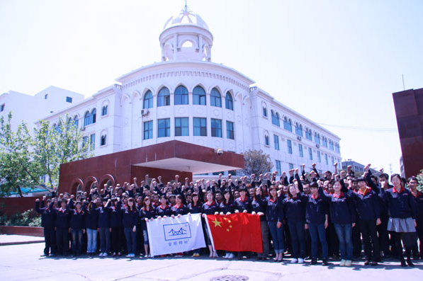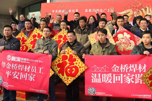 金橋焊材集團員工代表在集團門前宣誓:傳承企業(yè)精神,打造“焊材強國”。